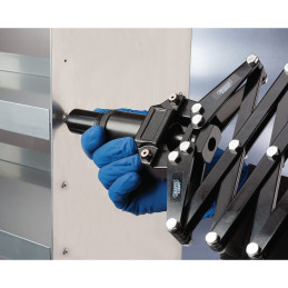 Concertina style heavy duty riveter, ideal for repetitive tasks using either aluminium, stainless steel or steel blind rivets. Concertina frame manufactured from tough carbon steel, with 4 interchangeable nozzles to fit 2.4, 3.2, 4.0 and 4.8mm rivets.