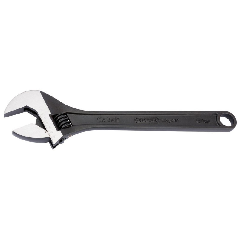 Crescent - type wrenches manufactured from chrome vanadium steel hardened and tempered with black phosphate finish, polished profile and jaws. Jaws offset at 22°. The 150, 200, 250 and 300mm sizes have a graduated scale on the fixed jaws. Suitable for use in areas where chemicals and chrome plate can give off poisonous fumes.