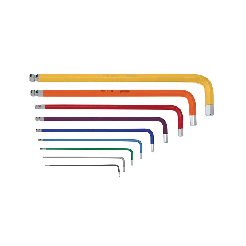 This metric long arm TX-STAR® security and ball ended hex key twin pack is colour-coded for easy identification. The keys are manufactured from chrome vanadium steel, which is correctly hardened and tempered. Each has a chamfered end, mirror polished chrome finish and brightly coloured powder coating to help prevent corrosion. All keys are arranged inside a fold-out easy release holder for organisation and portability.