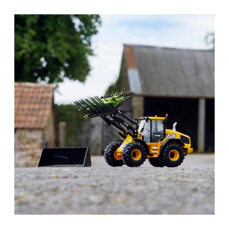 Live life on the farm with this wheeled loaded shovel. The 1:32 scale model features an interchangeable bucket and silage fork with working hydraulic lifts, rear hitch and big tyre treads.