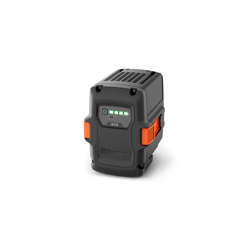 Husqvarna 40-B70 is an integrated low weight, fast charging 2 Ah battery suitable for home use with the complete Husqvarna 100-series, offering good capacity and runtime at a very low weight. Because of the low weight the battery is best to use for applications such as hedge trimming or grass trimming. Features excellent active cooling in demanding applications and during fast charging, and intuitive 4-LED charge indicator. Rechargeable up to 600 times.