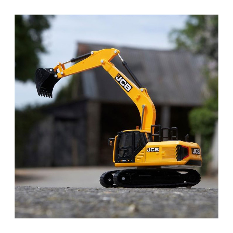 At 1:32 scale, the new die cast JCB 220X model features moving rubber tracks, 360 degree rotation and functioning arm movement.